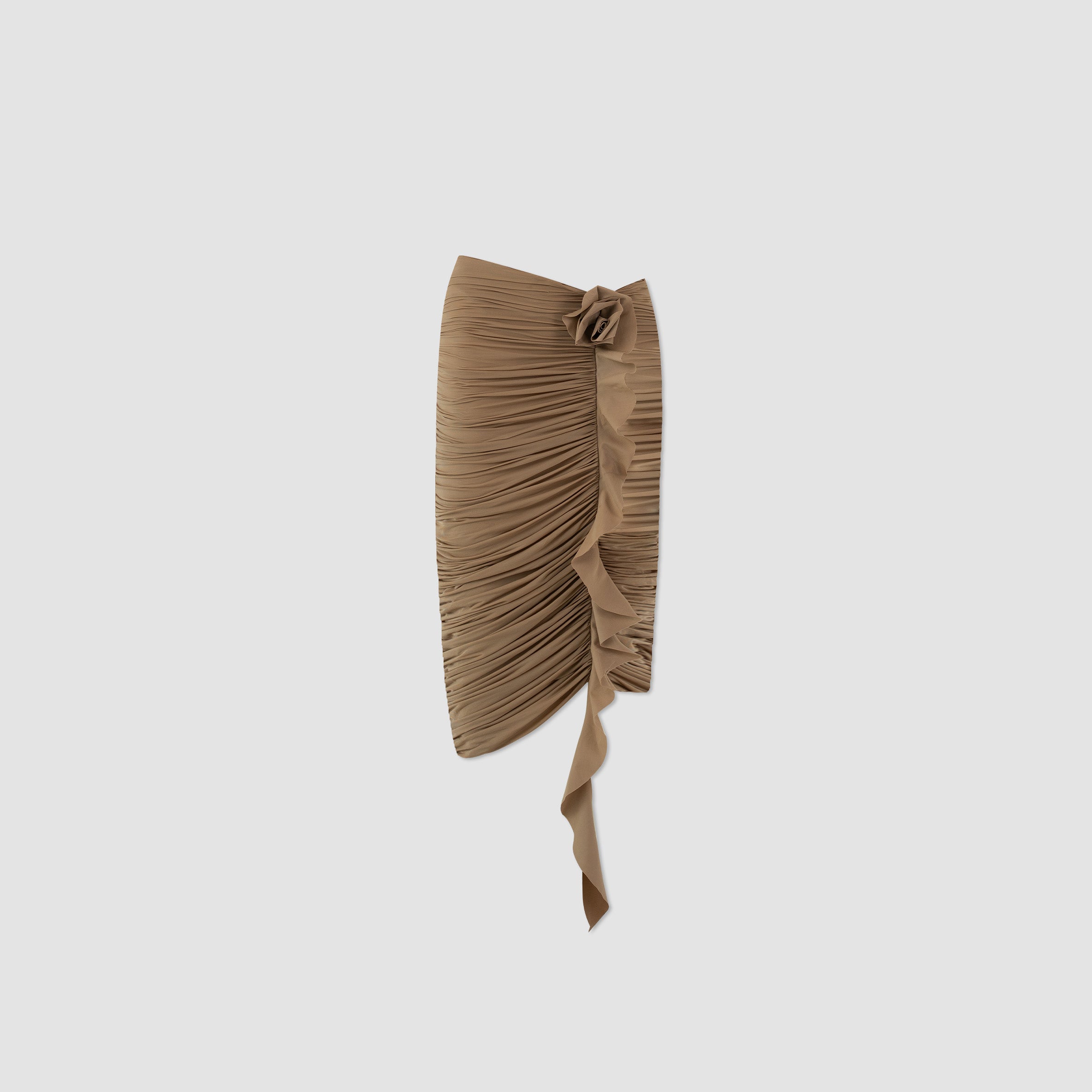 The Coroncoro skirt features a low-rise, mid length asymmetric silhouette,
