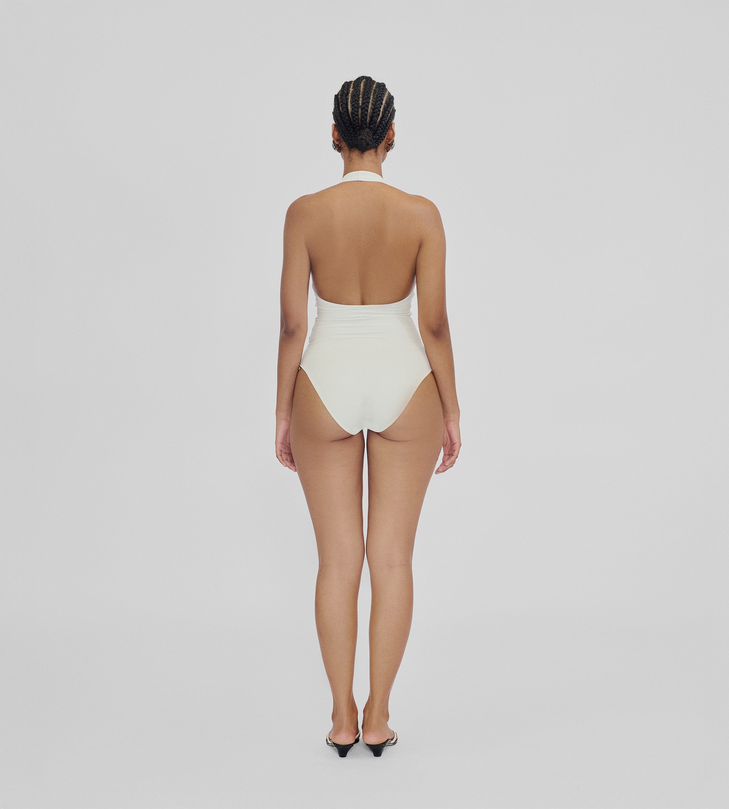 The Guayacán one-piece features a striking deep V-neckline and a sensuous open back. Its sleek silhouette elegantly accentuates every curve, while a playful ruched side detail, adorned with our new 3D floral design, adds a touch of charm to this piece.