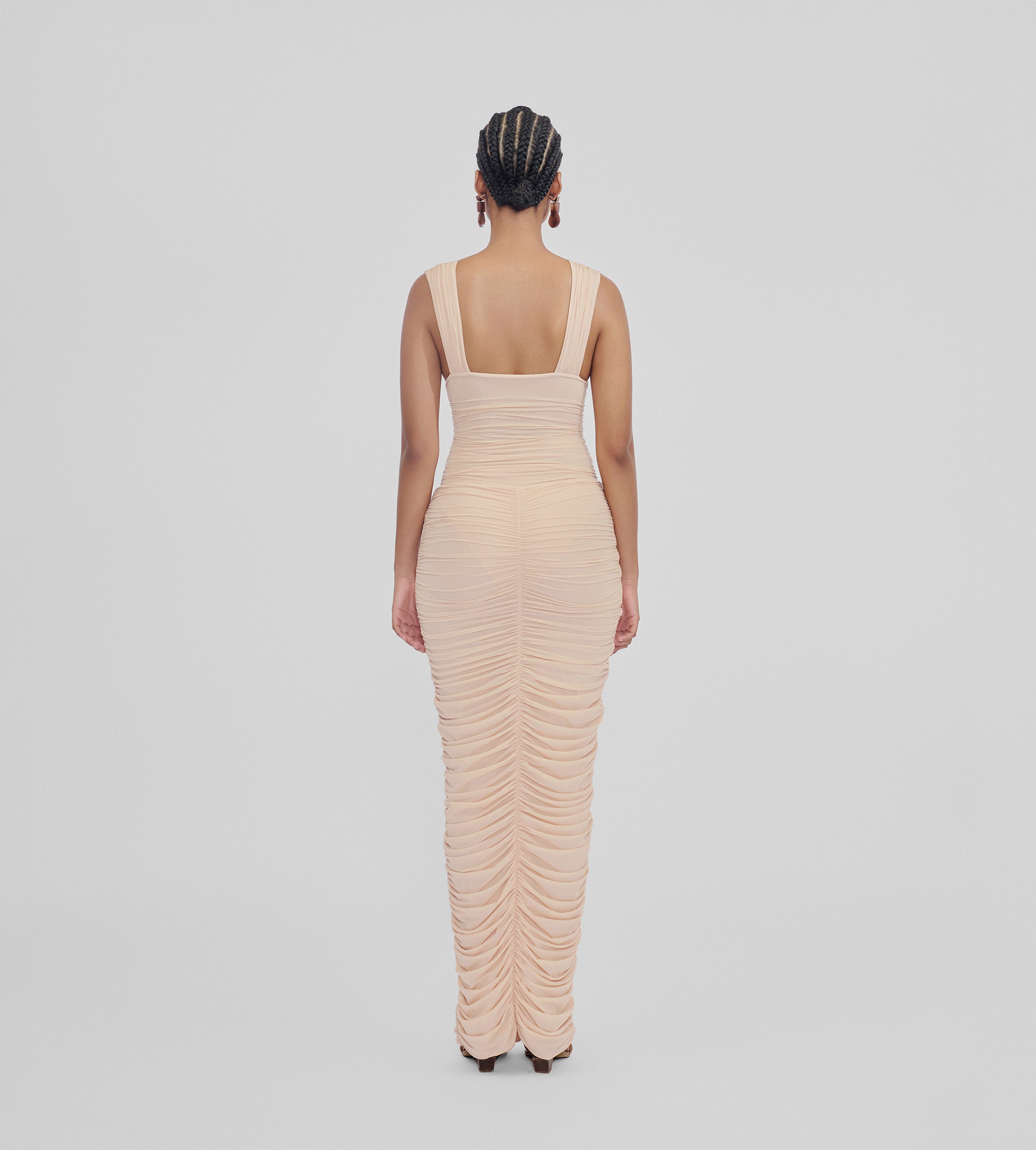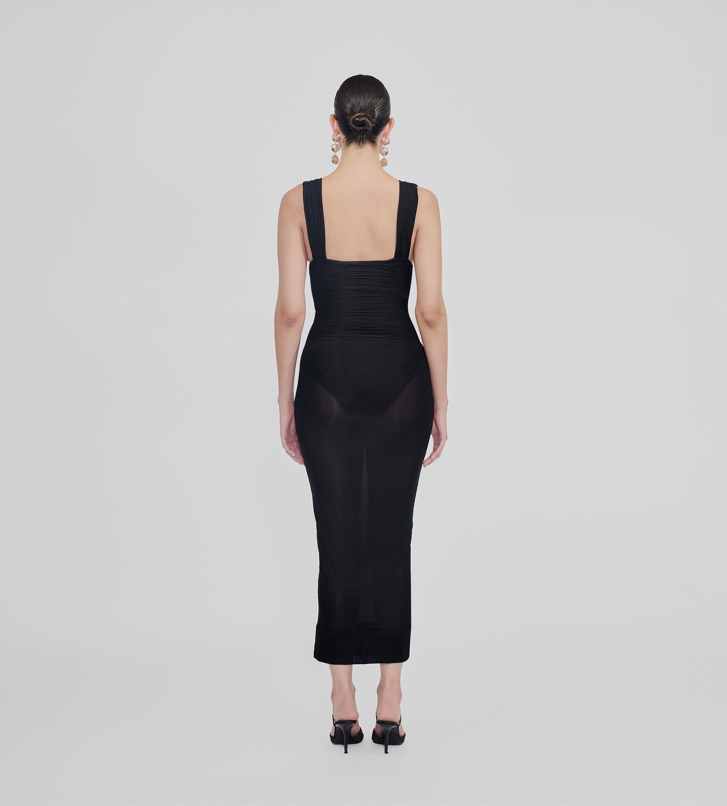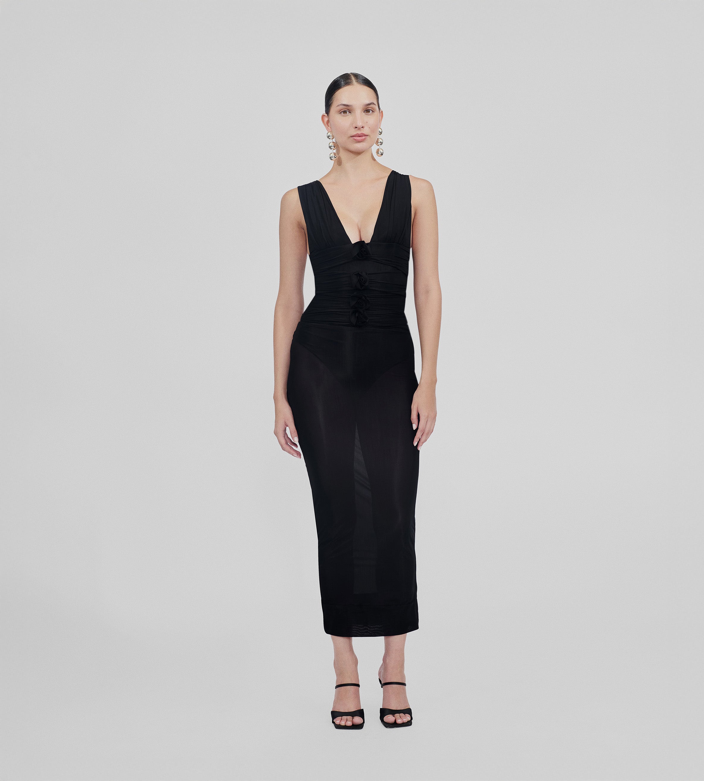The Níspero bodysuit showcases a daring deep V plunging neckline, paired with strategically placed ruched straps that create a beautifully sculpted look. It is adorned with a delicate line of our 3D flower design. Made completely from our semi-transparent lycra.