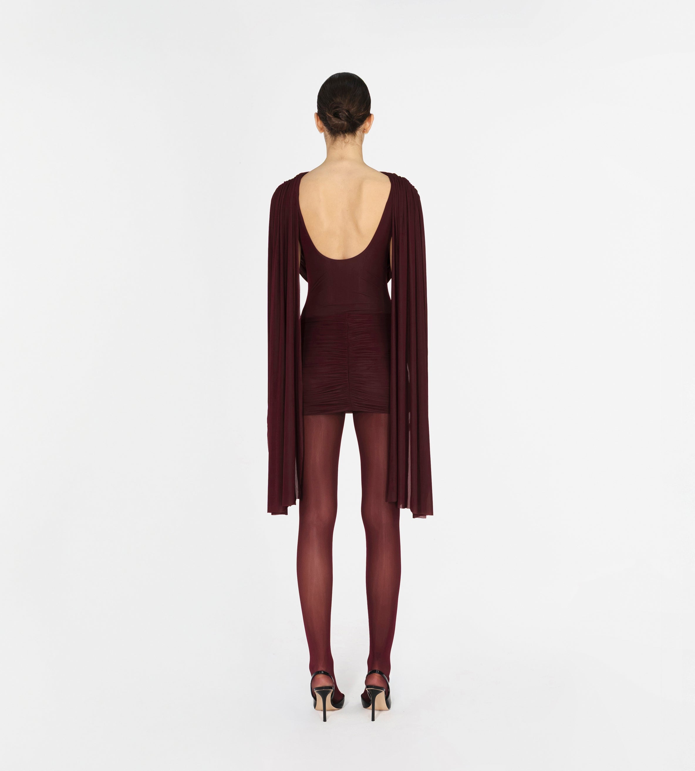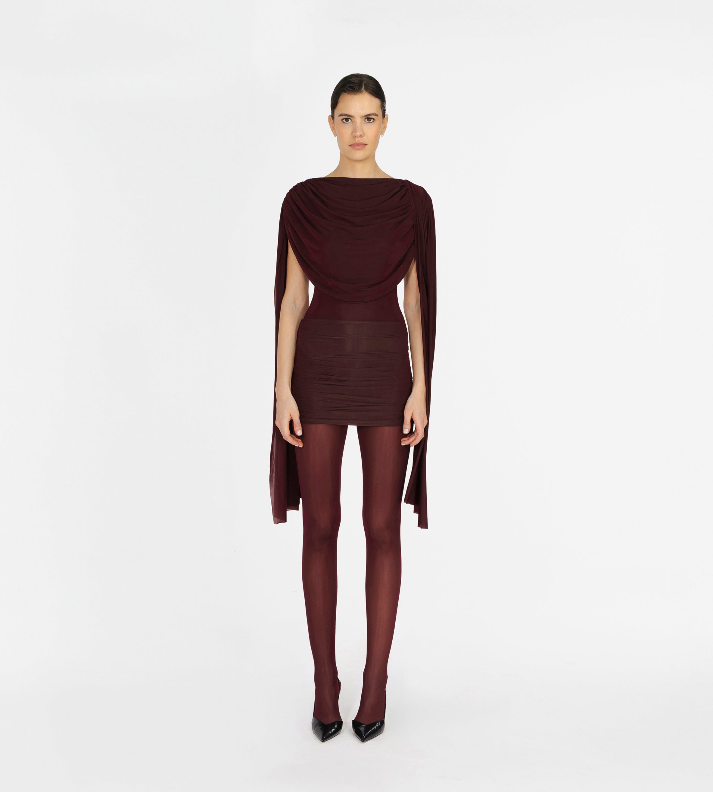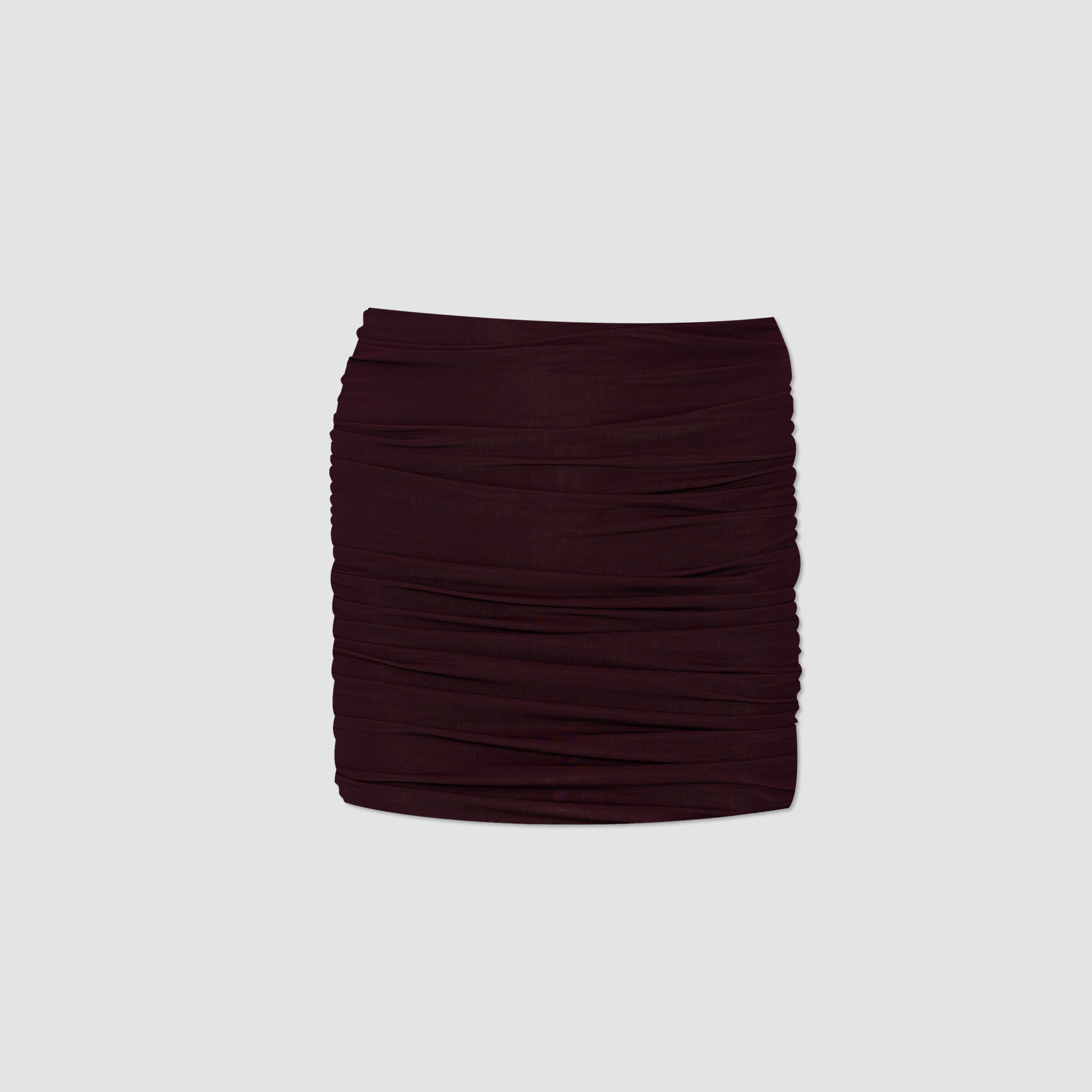 The Ombra mini skirt is the epitome of versatility. Designed with soft, all-over ruching, it comes in two distinct finishes: a double layer of our translucent fabric with double-panel ruching at the back for a light, ethereal effect, or a plush velvet option for a rich, fall-ready look. This piece adds texture and dimension, effortlessly elevating and complementing any outfit.