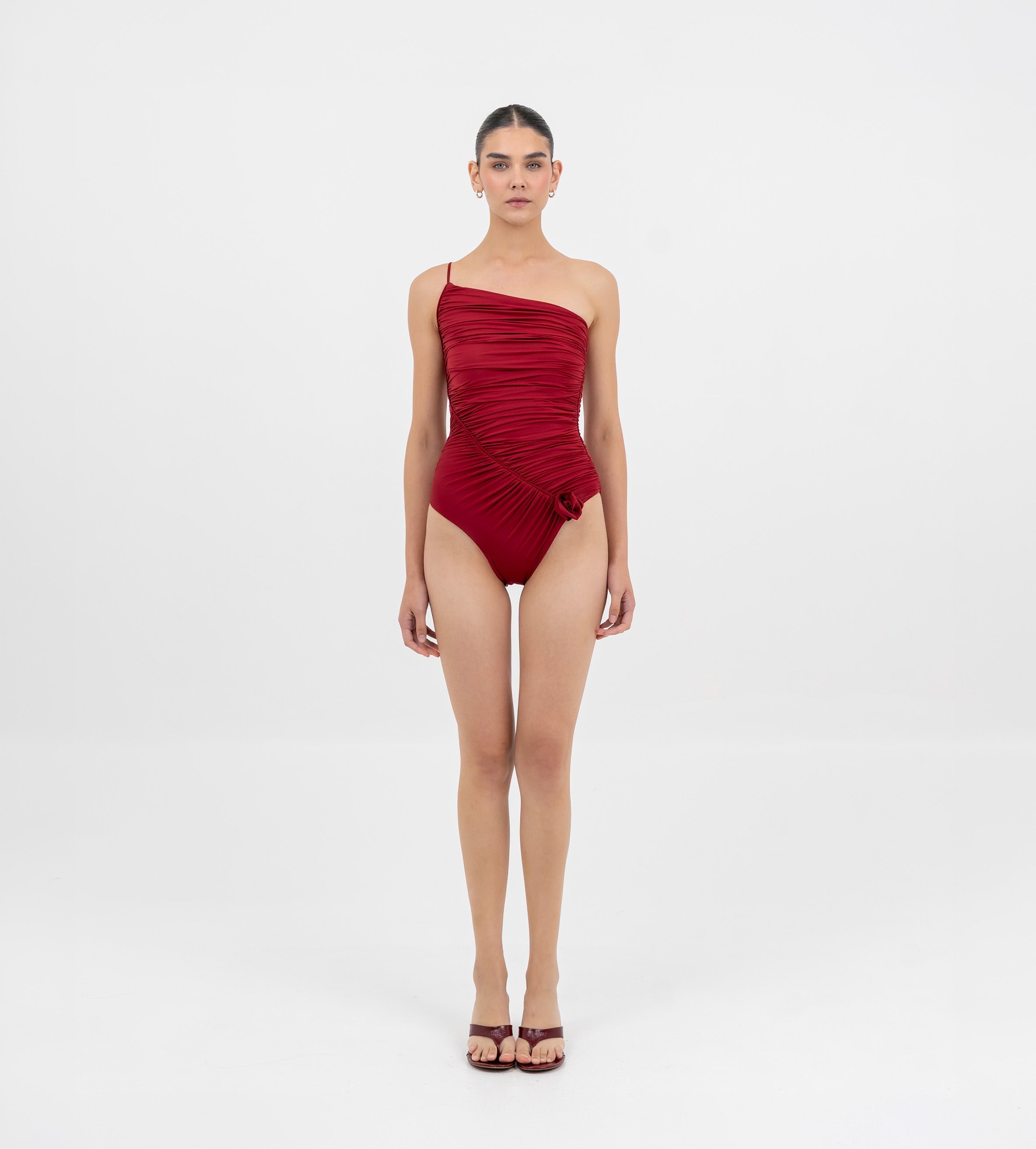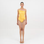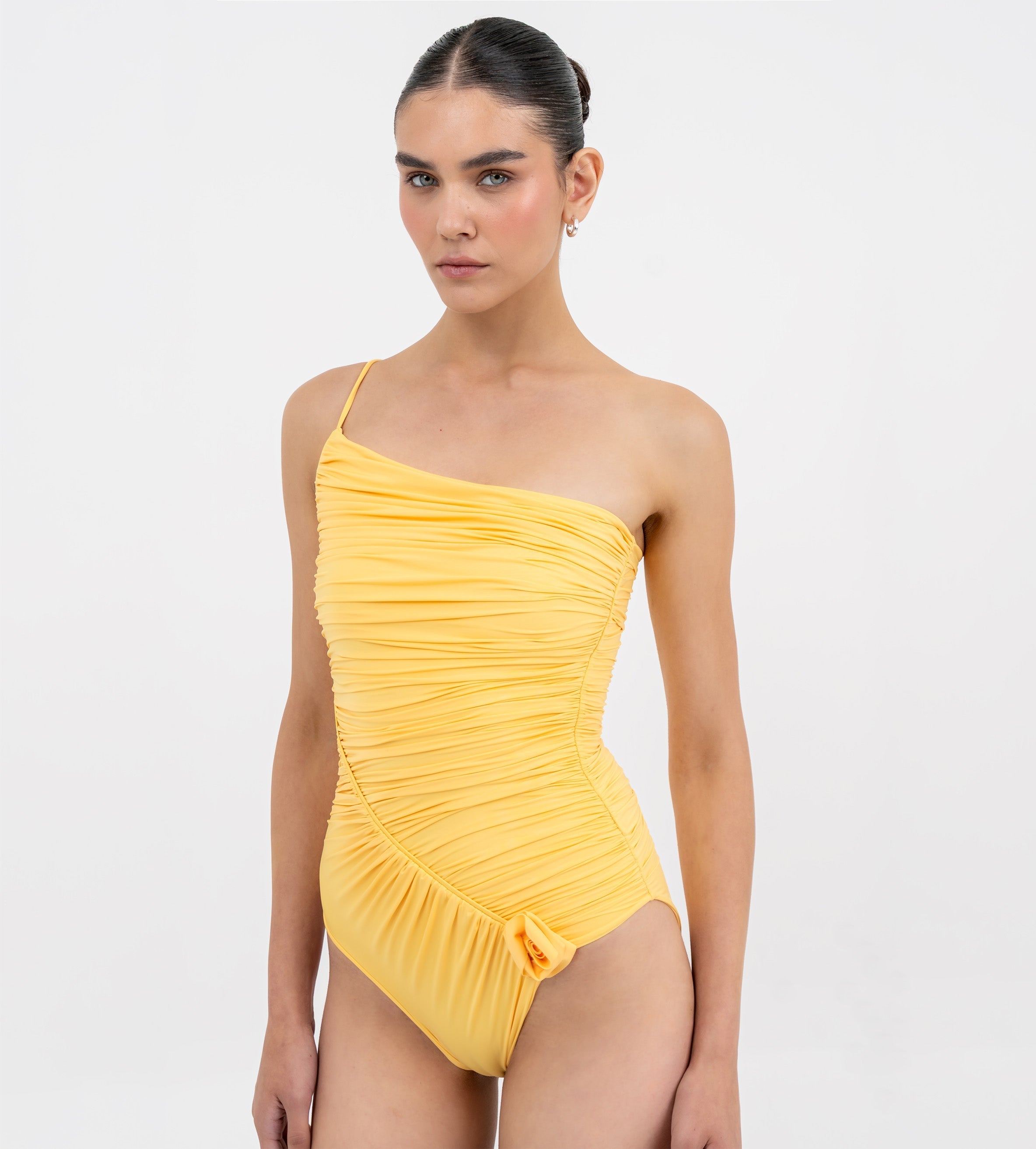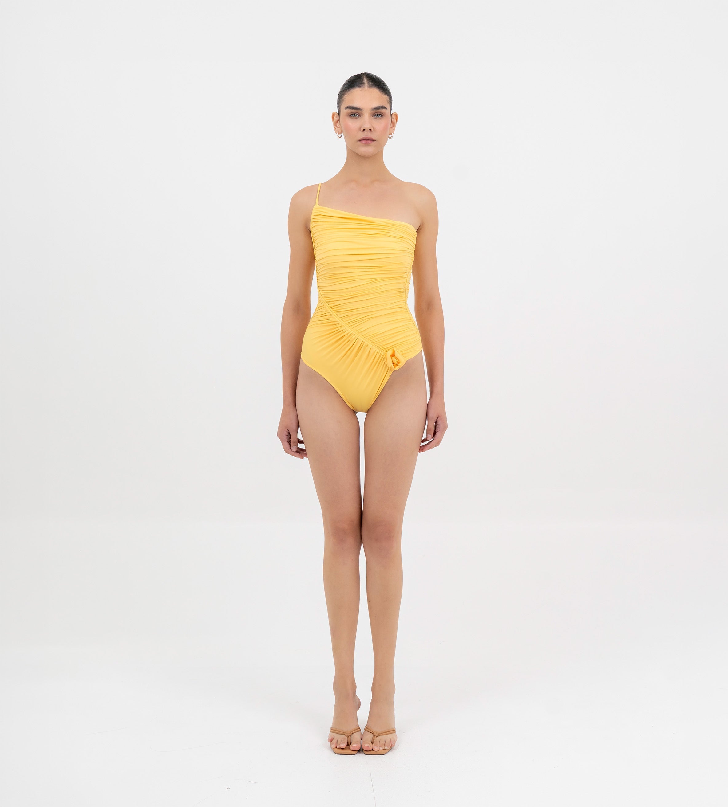 The Salina one-piece captivates with a one-shoulder asymmetric neckline that